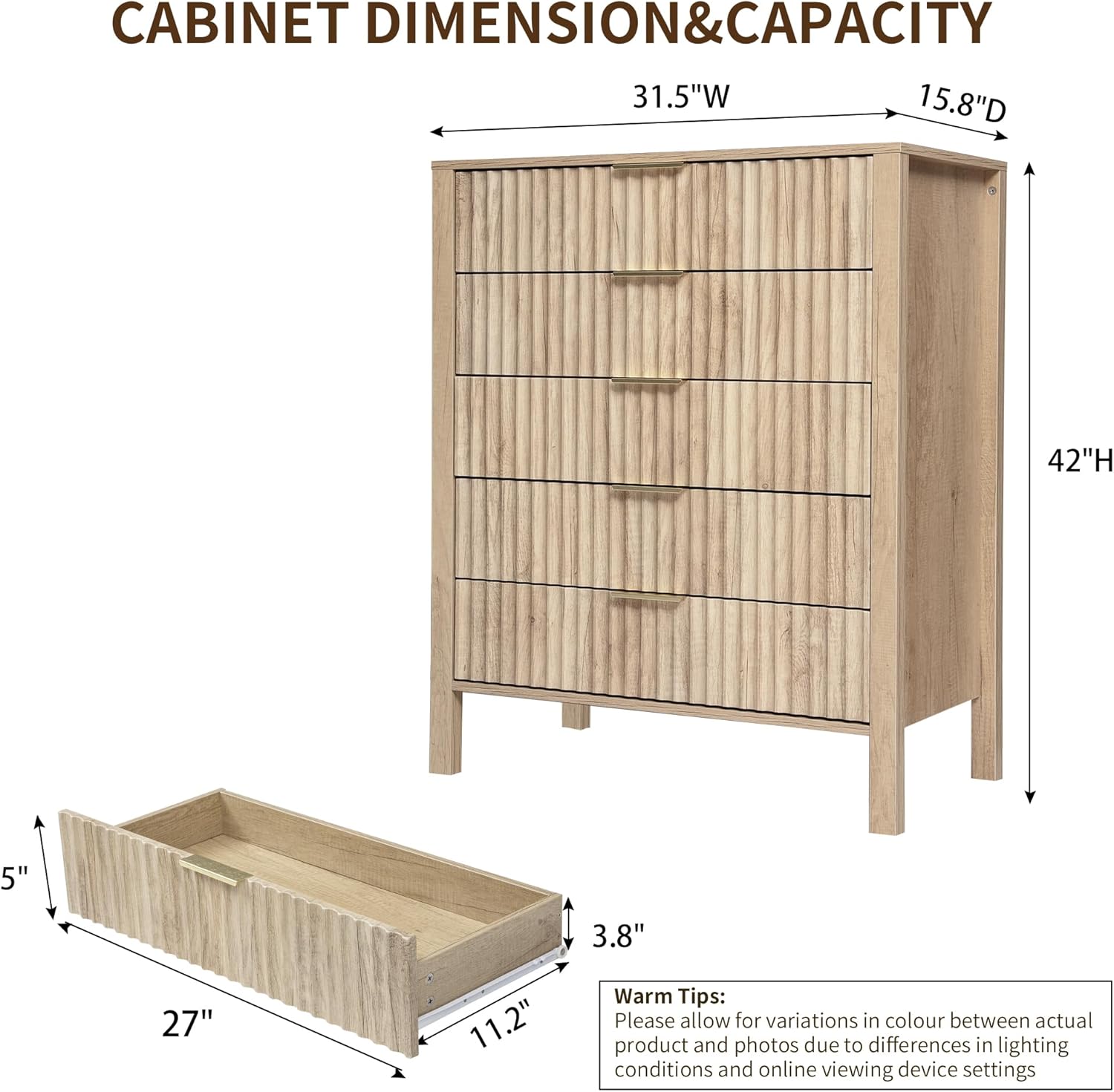 | Model Name | 5 Drawer Dresser with Fluted Panel |